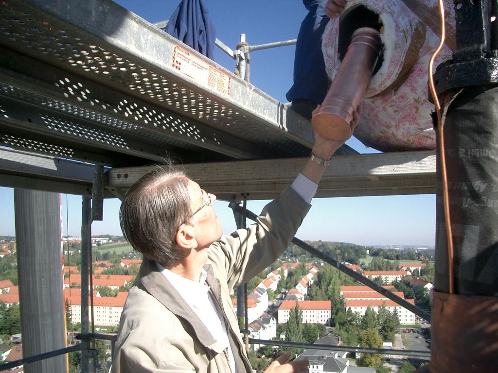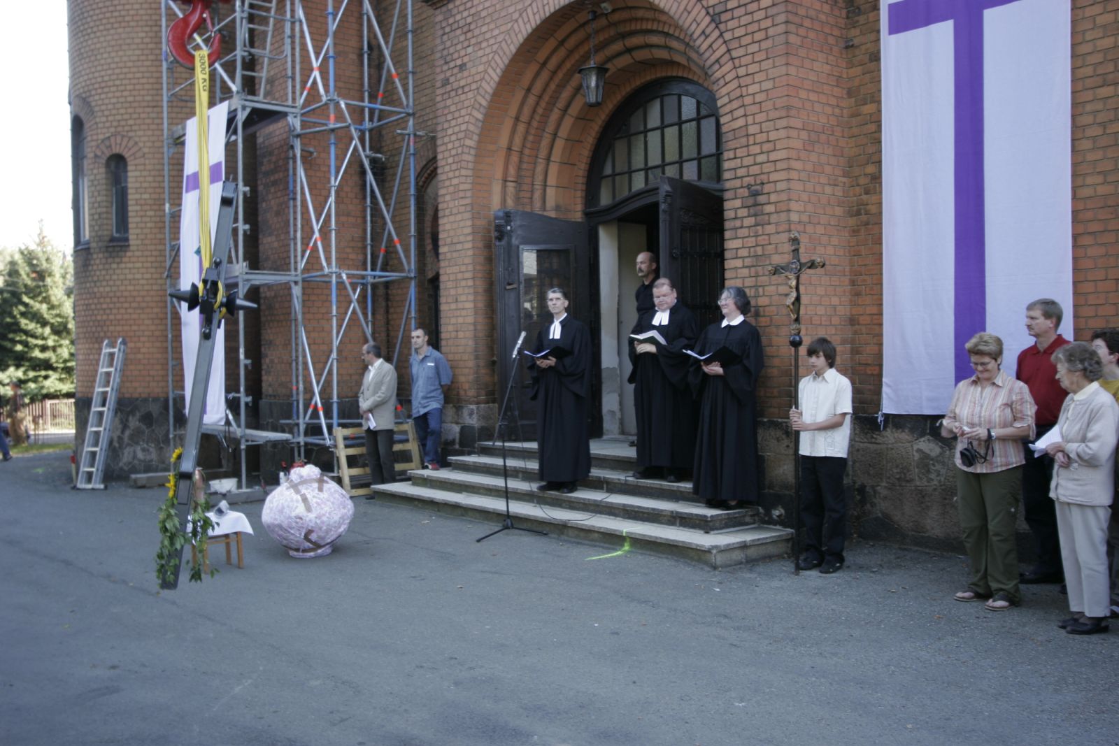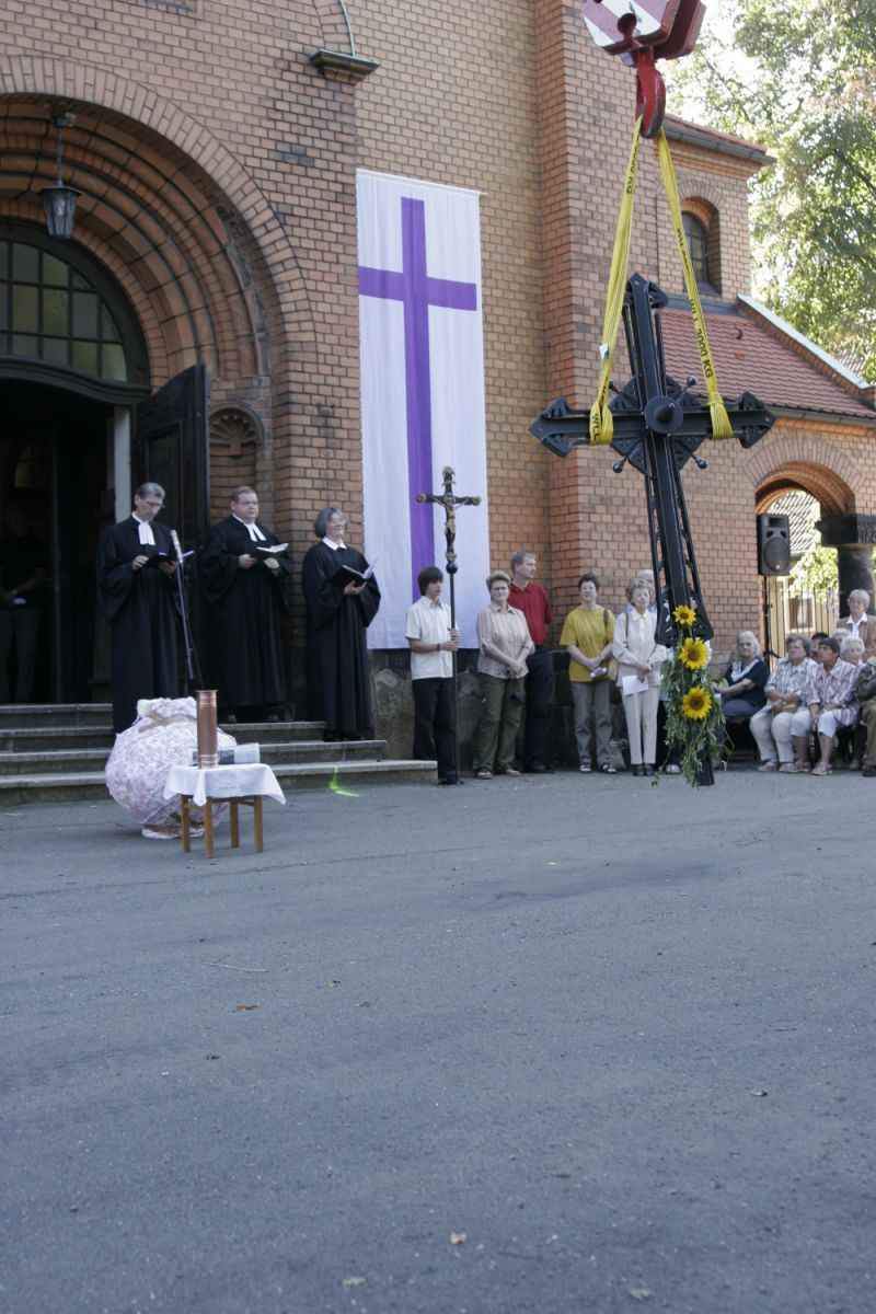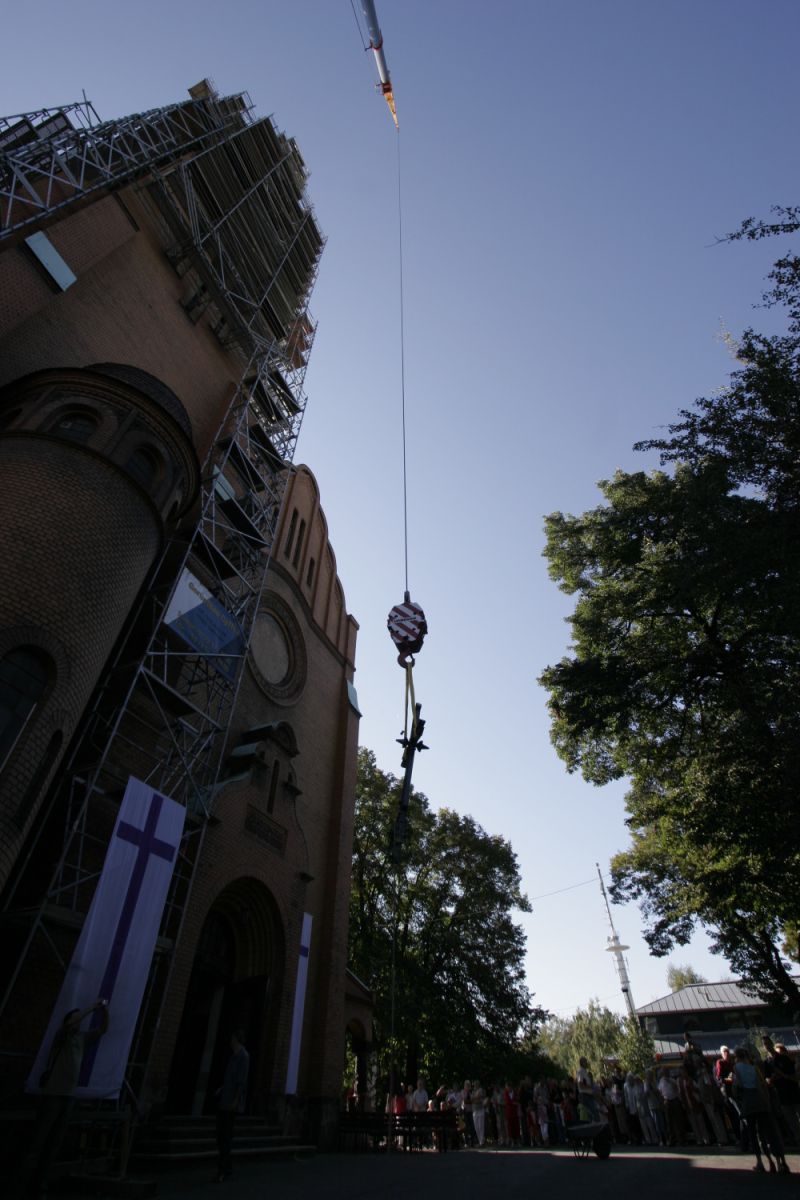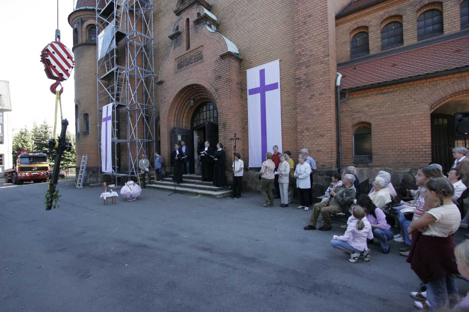 Am 23. September 2006 konnte das neue Turmkreuz auf die Turmspitze gehoben und montiert werden. …